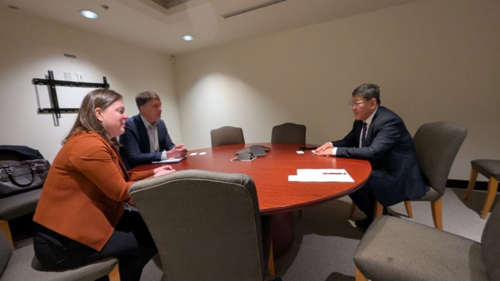 Үндэсний геологийн албаны дарга Н.Мөнхбилэг, Элчин сайдын яамны зөвлөх М.Батхуяг нар Бритиш Колумб мужийн Уул уурхай, чухал ашигт малтмалын Дэд сайд Нэйт Аманн-Блэйк, Туслах дэд сайд Кендра Жонстон нартай уулзаж чухал ашигт малтмалын чиглэлд хэрэгжүүлж буй бодлого, үйл ажиллагааны талаар, Бритиш Колумбийн Их сургуулийн Дэлхий, Далай, Агаар мандлын газрын дарга Доктор, профессор Эрик Эберхард, Доктор, дэд профессор Жойл Сэйлор нартай уулзаж, геологи, ашигт малтмалын чиглэлд мэргэжилтэн бэлтгэх, хамтарсан сургалт хэрэгжүүлэх, БКИС-ын дэргэдэх Ашигт малтмалын ордын судалгааны төвтэй хамтран ажиллах талаар санал солилцлоо.