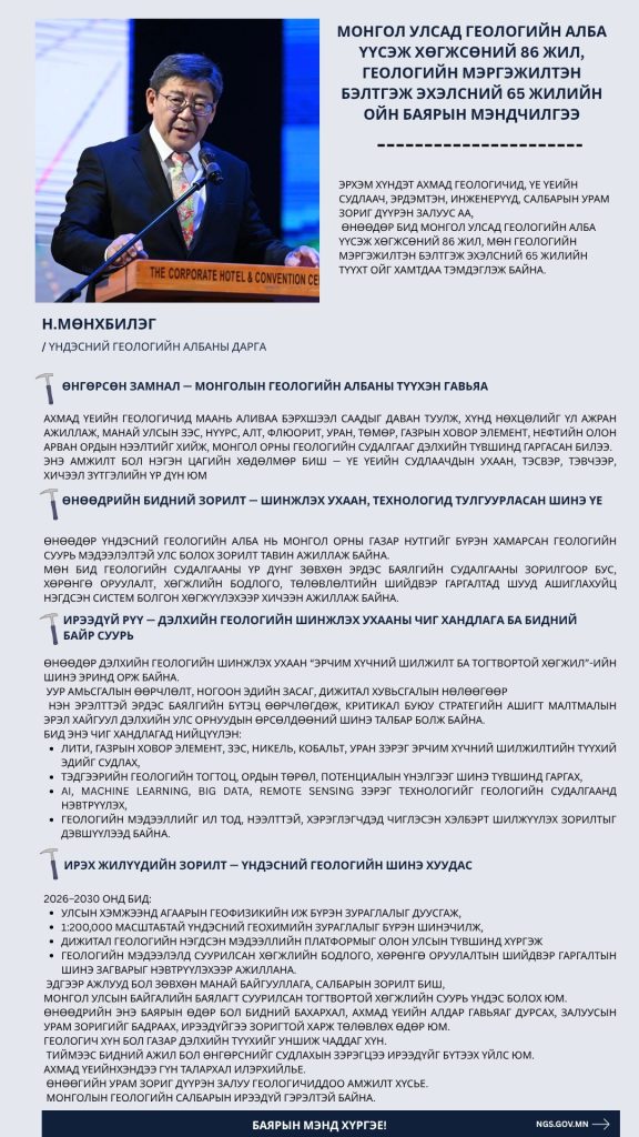 Монгол улсад геологийн алба үүсэж хөгжсөний 86 жил, геологийн мэргэжилтэн бэлтгэж эхэлсний 65 жилийн ойн баярын мэндчилгээ